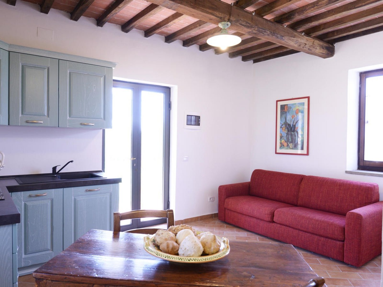 Composé d’une cuisine avec séjour, d’une chambre double et d’une salle de bain.